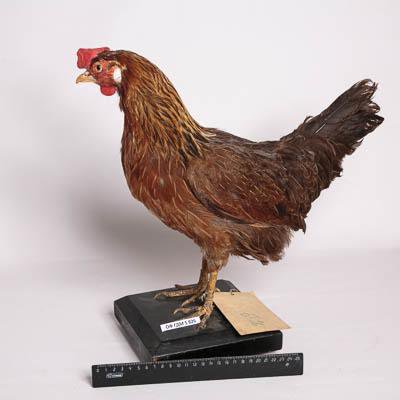 Чучело. Курица породы Итальянская куропатчатая. Классификация: Хордовые Chordata, Позвоночные Vertebrata, Птицы Aves, Курообразные Galliformes, Фазановые Phasianidae