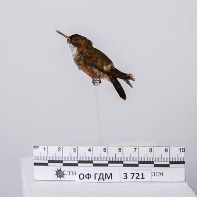 Чучело. Белохохлый колибри-пафозия. Paphosia adorabilis (Salvin,1870). Классификация: Хордовые Chordata, Позвоночные Vertebrata, Птицы Aves, Стрижеобразные Apodiformes, Колибри Trochilidae, Белохохлый колибри-кокетка Lophornis adorabilis Salvin,1870