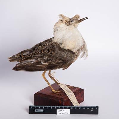 Чучело. Турухтан. Philomachus pugnax (L.,1758). Классификация: Хордовые Chordata, Позвоночные Vertebrata, Птицы Aves, Ржанкообразные Charadriiformes, Бекасовые Scolopacidae, Турухтан Calidris pugnax (L.,1758)
