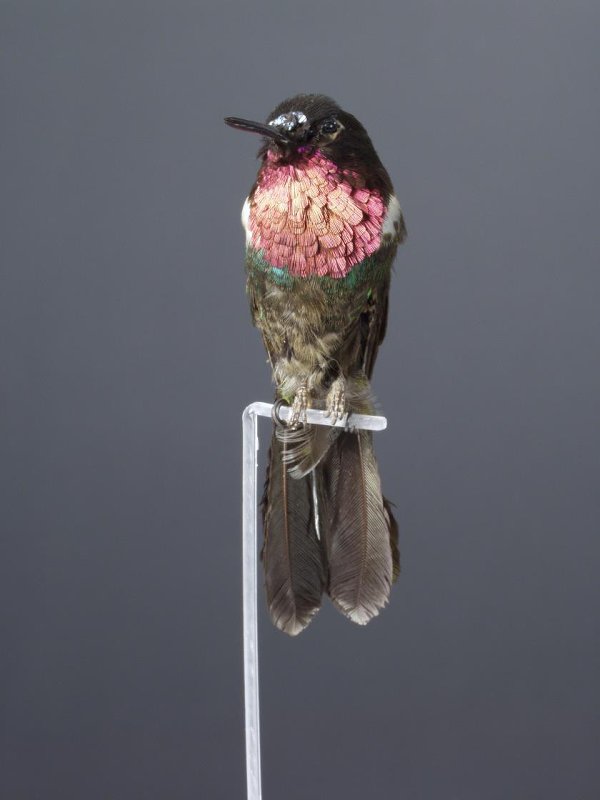 Чучело. Меридский колибри-нимфа. Heliangelus spencei (Bourcier,1847). Классификация: Хордовые Chordata, Позвоночные Vertebrata, Птицы Aves, Стрижеобразные Apodiformes, Колибри Trochilidae, Меридский колибри-нимфа Heliangelus spencei (Bourcier,1847)