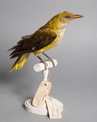 Чучело. Обыкновенная иволга. Oriolus oriolus L.,1758. Классификация: Хордовые Chordata, Позвоночные Vertebrata, Птицы Aves, Воробьинообразные Passeriformes, Иволговые Oriolidae, Обыкновенная иволга Oriolus oriolus (L.,1758)