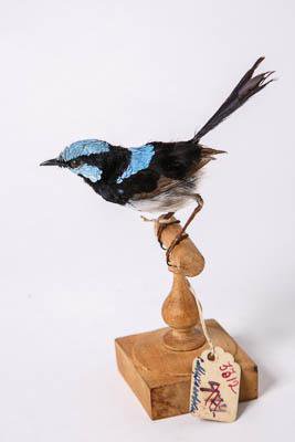 Чучело. Прекрасный расписной малюр. Malurus cyaneus (Latham). Классификация: Хордовые Chordata, Позвоночные Vertebrata, Птицы Aves, Воробьинообразные Passeriformes, Австралийские славки Maluridae, Прекрасный расписной малюр Malurus cyaneus (Latham,1783)