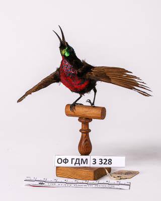 Чучело. Алогрудая нектарница. Nectarinia senegalensis (L., Классификация: Хордовые Chordata, Позвоночные Vertebrata, Птицы Aves, Воробьинообразные Passeriformes, Нектарницевые Nectariniidae, Алогрудая нектарница Nectarinia senegalensis (L.,