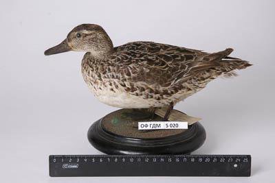 Чучело. Трескунок. Anas querquedula L.,1758. Классификация: Хордовые Chordata, Позвоночные Vertebrata, Птицы Aves, Гусеобразные Anseriformes, Утиные Anatidae, Чирок-трескунок Spatula querquedula (L.,1758)