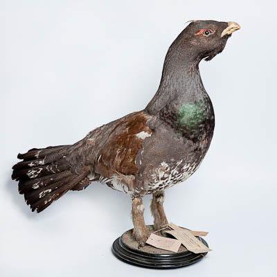 Чучело. Глухарь. Tetrao urogallus L.,1758. Классификация: Хордовые Chordata, Позвоночные Vertebrata, Птицы Aves, Курообразные Galliformes, Тетеревиные Tetraonidae, Глухарь Tetrao urogallus L.,1758