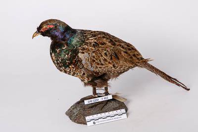Чучело. Японский фазан. Phasianus versicolor Vieillot,1825. Классификация: Хордовые Chordata, Позвоночные Vertebrata, Птицы Aves, Курообразные Galliformes, Фазановые Phasianidae, Японский фазан Phasianus versicolor Vieillot,1825