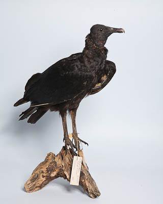 Чучело. Гриф-урубу. Coragyps atratus Bechst.,1793. Классификация: Хордовые Chordata, Позвоночные Vertebrata, Птицы Aves, Соколообразные Falconiformes, Американские грифы Cathartidae, Гриф-урубу Coragyps atratus (Bechstein,1793)