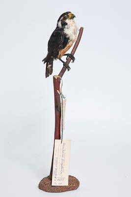 Чучело. Сокол-крошка черноногий. Microhierax fringillarius Drapiez,1824. Классификация: Хордовые Chordata, Позвоночные Vertebrata, Птицы Aves, Соколообразные Falconiformes, Соколиные Falconidae, Черноногий сокол-крошка Microhierax fringillarius (Drapiez,1824)