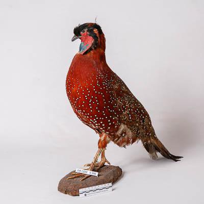 Чучело. Трагопан-сатир. Tragopan satyra L.,1766. Классификация: Хордовые Chordata, Позвоночные Vertebrata, Птицы Aves, Курообразные Galliformes, Фазановые Phasianidae, Трагопан-сатир Tragopan satyra (L.,1758)