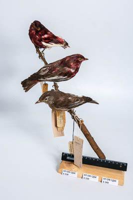 Чучело. Пурпурная котинга. Xipholena pompadora? Классификация: Хордовые Chordata, Позвоночные Vertebrata, Птицы Aves, Воробьинообразные Passeriformes, Котинговые Cotingidae, Пурпурная котинга Xipholena pompadora