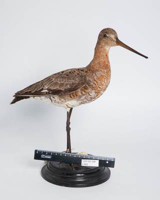 Чучело. Большой веретенник. Limosa limosa (L.,1758). Классификация: Хордовые Chordata, Позвоночные Vertebrata, Птицы Aves, Ржанкообразные Charadriiformes, Бекасовые Scolopacidae, Большой веретенник Limosa limosa (L.,1758)