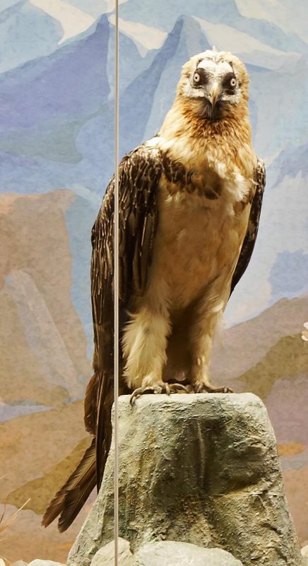 Чучело. Бородач. Gypaetus barbatus L.,1758. Классификация: Хордовые Chordata, Позвоночные Vertebrata, Птицы Aves, Соколообразные Falconiformes, Ястребиные Accipitridae, Бородач Gypaetus barbatus (L.,1758)