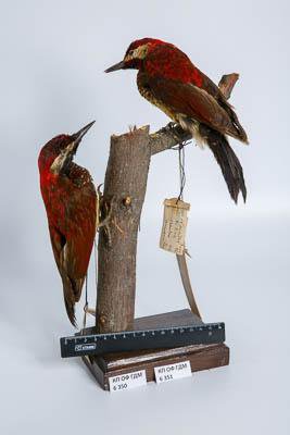 Чучело. Полосатобровый дятел. Hypoxanthus rivolii Boiss.,1840. Классификация: Хордовые Chordata, Позвоночные Vertebrata, Птицы Aves, Дятлообразные Piciformes, Дятловые Picidae, Красноспинный полосатобрюхий дятел Colaptes rivolii (Boissonneau,1840)