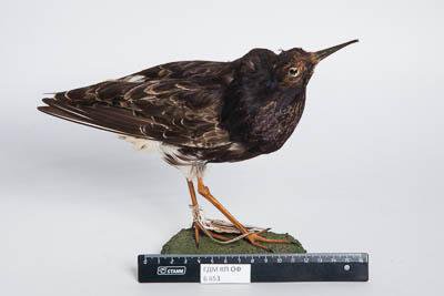 Чучело. Турухтан. Philomachus pugnax (L.,1758). Классификация: Хордовые Chordata, Позвоночные Vertebrata, Птицы Aves, Ржанкообразные Charadriiformes, Бекасовые Scolopacidae, Турухтан Calidris pugnax (L.,1758)