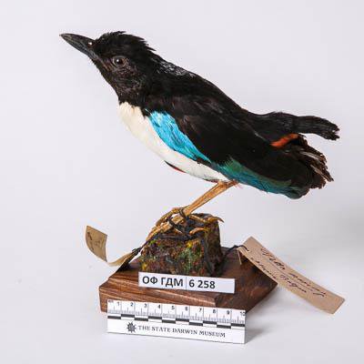 Чучело. Питта-великан. Pitta maxima Muller et Schlegel,1839. Классификация: Хордовые Chordata, Позвоночные Vertebrata, Птицы Aves, Воробьинообразные Passeriformes, Питтовые Pittidae, Питта-великан Pitta maxima S.Muller et Schlegel,1840