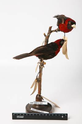 Чучело. Огненная расписная танагра. Ramphocelus sanguinolentus (Lesson). Классификация: Хордовые Chordata, Позвоночные Vertebrata, Птицы Aves, Воробьинообразные Passeriformes, Танагровые Thraupidae, Огненная расписная танагра Ramphocelus sanguinolentus (Lesson)