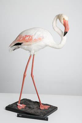 Чучело. Обыкновенный фламинго. Phoenicopterus roseus Pallas,1811. Классификация: Хордовые Chordata, Позвоночные Vertebrata, Птицы Aves, Фламингообразные Phoenicopteriformes, Фламинговые Phoenicopteridae, Розовый фламинго Phoenicopterus roseus Pallas,1811