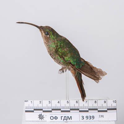 Чучело. Лазурный колибри-саблекрыл. Campylopterus falcatus (Swainson,1821). Классификация: Хордовые Chordata, Позвоночные Vertebrata, Птицы Aves, Стрижеобразные Apodiformes, Колибри Trochilidae, Лазурный колибри-саблекрыл Campylopterus falcatus (Swainson,1821)