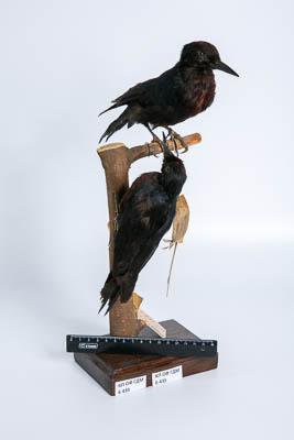 Чучело. Гваделупский меланерпес. Melanerpes herminieri (Lesson,1831). Классификация: Хордовые Chordata, Позвоночные Vertebrata, Птицы Aves, Дятлообразные Piciformes, Дятловые Picidae, Гваделупский меланерпес Melanerpes herminieri (Lesson,1830)