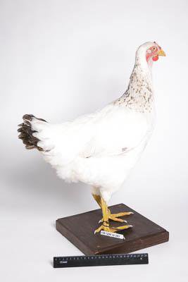 Чучело. Курица породы юрловская голосистая. Классификация: Хордовые Chordata, Позвоночные Vertebrata, Птицы Aves, Курообразные Galliformes, Фазановые Phasianidae