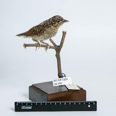 Чучело. Вертишейка. Jynx torquilla L.,1758. Классификация: Хордовые Chordata, Позвоночные Vertebrata, Птицы Aves, Дятлообразные Piciformes, Дятловые Picidae, Вертишейка Jynx torquilla L.,1758
