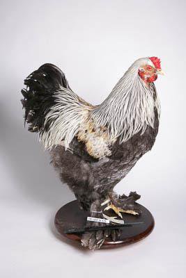 Чучело. Петух породы Брама. Классификация: Хордовые Chordata, Позвоночные Vertebrata, Птицы Aves, Курообразные Galliformes, Фазановые Phasianidae, Домашняя курица