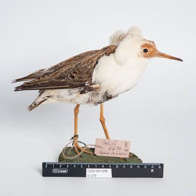 Чучело. Турухтан. Philomachus pugnax (L.,1758). Классификация: Хордовые Chordata, Позвоночные Vertebrata, Птицы Aves, Ржанкообразные Charadriiformes, Бекасовые Scolopacidae, Турухтан Calidris pugnax (L.,1758)