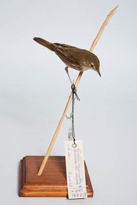 Чучело. Болотная камышевка. Acrocephalus palustris (Bechstein, 1798). Классификация: Хордовые Chordata, Позвоночные Vertebrata, Птицы Aves, Воробьинообразные Passeriformes, Славковые Sylviidae