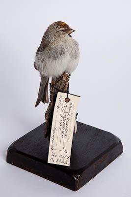Чучело. Обыкновенная чечетка. Acanthis flammea (L.,1758). Классификация: Хордовые Chordata, Позвоночные Vertebrata, Птицы Aves, Воробьинообразные Passeriformes, Вьюрковые Fringillidae, Обыкновенная чечетка Acanthis flammea (L.,1758)