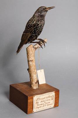 Чучело. Обыкновенный скворец. Sturnus vulgaris L.,1758. Классификация: Хордовые Chordata, Позвоночные Vertebrata, Птицы Aves, Воробьинообразные Passeriformes, Скворцовые Sturnidae, Обыкновенный скворец Sturnus vulgaris L.,1758