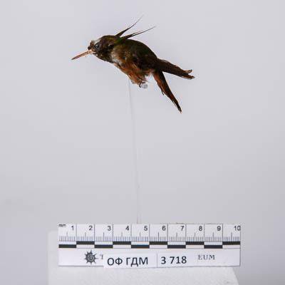 Чучело. Белохохлый колибри-пафозия. Paphosia adorabilis (Salvin,1870). Классификация: Хордовые Chordata, Позвоночные Vertebrata, Птицы Aves, Стрижеобразные Apodiformes, Колибри Trochilidae, Белохохлый колибри-кокетка Lophornis adorabilis Salvin,1870