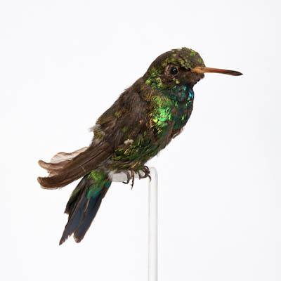 Чучело. Золотобрюхий колибри-изумруд. Chlorostilbon aureoventris (d`Orbigny et Lafresnaye,1838). Классификация: Хордовые Chordata, Позвоночные Vertebrata, Птицы Aves, Стрижеобразные Apodiformes, Колибри Trochilidae, Золотобрюхий колибри-изумруд Chlorostilbon lucidus (Shaw,1812)