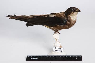 Чучело. Колючехвостый стриж. Hirundapus caudacutus (Latham,1801). Классификация: Хордовые Chordata, Позвоночные Vertebrata, Птицы Aves, Стрижеобразные Apodiformes, Настоящие стрижи Apodidae, Колючехвостый стриж Hirundapus caudacutus (Latham,1801)