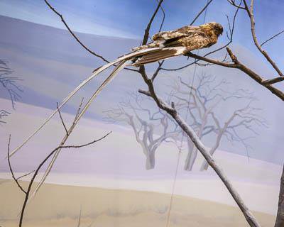 Чучело. Вымпеловый козодой. Cosmetornis vexillarius Gould, Классификация: Хордовые Chordata, Позвоночные Vertebrata, Птицы Aves, Козодоеобразные Caprimulgiformes, Козодоевые Caprimulgidae, Вымпеловый козодой Caprimulgus vexillarius (Gould,1838)