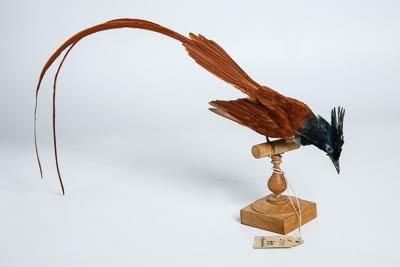 Чучело. Обыкновенная райская мухоловка. Terpsiphone paradisi (L.,1758). Классификация: Хордовые Chordata, Позвоночные Vertebrata, Птицы Aves, Воробьинообразные Passeriformes, Мухоловковые Muscicapidae, Обыкновенная райская мухоловка Terpsiphone paradisi (L.,1758)