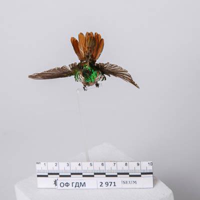 Чучело. Великолепный колибри-кокетка. Lophornis magnifica (Vieillot,1817). Классификация: Хордовые Chordata, Позвоночные Vertebrata, Птицы Aves, Стрижеобразные Apodiformes, Колибри Trochilidae, Великолепный колибри-кокетка Lophornis magnificus (Vieillot,1817)
