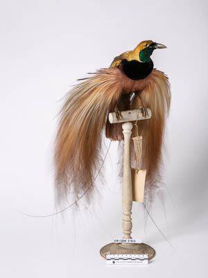 Чучело. Пурпурная райская птица. Paradisaea raggiana Sclater,1873. Классификация: Хордовые Chordata, Позвоночные Vertebrata, Птицы Aves, Воробьинообразные Passeriformes, Райские птицы Paradisaeidae, Пурпурная райская птица Paradisaea raggiana P.L.Sclater,1873