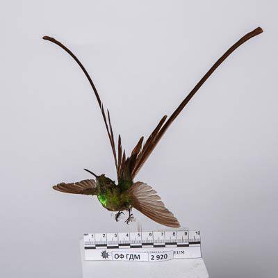 Чучело. Чернохвостый колибри-лесбия. Lesbia victoria (Bourcier et Mulsant,1846). Классификация: Хордовые Chordata, Позвоночные Vertebrata, Птицы Aves, Стрижеобразные Apodiformes, Колибри Trochilidae, Чернохвостый колибри-лесбия Lesbia victoria (Bourcier et Mulsant,1846)
