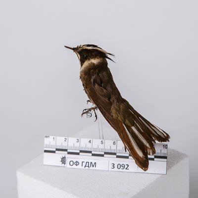Чучело. Шлемоносный колибри. Oxypogon guerinii (Boissoneau,1840). Классификация: Хордовые Chordata, Позвоночные Vertebrata, Птицы Aves, Стрижеобразные Apodiformes, Колибри Trochilidae, Шлемоносный колибри Oxypogon guerinii (Boissoneau,1840)