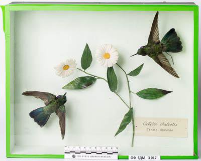 Чучело. Аметистовоухий колибри. Colibri serrirostris (Vieillot,1816). Классификация: Хордовые Chordata, Позвоночные Vertebrata, Птицы Aves, Стрижеобразные Apodiformes, Колибри Trochilidae, Аметистовоухий колибри-фиалкоух Colibri serrirostris (Vieillot,1816)