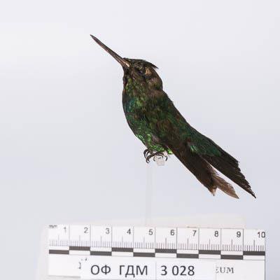 Чучело. Бронзовый колибри-эрион. Eriocnemis vestitus (Lesson,1838). Классификация: Хордовые Chordata, Позвоночные Vertebrata, Птицы Aves, Стрижеобразные Apodiformes, Колибри Trochilidae, Бронзовый колибри-эрион Eriocnemis vestita (Lesson,1839)