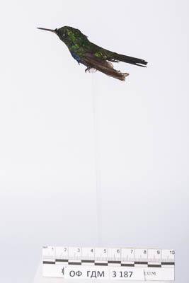 Чучело. Фиолетовобрюхий колибри-дамофила. Juliamya julie (Bourcier,1843). Классификация: Хордовые Chordata, Позвоночные Vertebrata, Птицы Aves, Стрижеобразные Apodiformes, Колибри Trochilidae, Фиолетовобрюхий колибри-дамофила Juliamya julie (Bourcier,1843)
