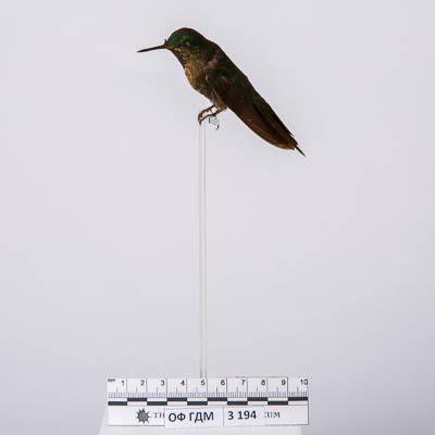 Чучело. Чешуйчатый колибри-металлура. Metallura aeneocauda (Gould,1846). Классификация: Хордовые Chordata, Позвоночные Vertebrata, Птицы Aves, Стрижеобразные Apodiformes, Колибри Trochilidae, Чешуйчатый колибри-металлура Metallura aeneocauda (Gould,1846)