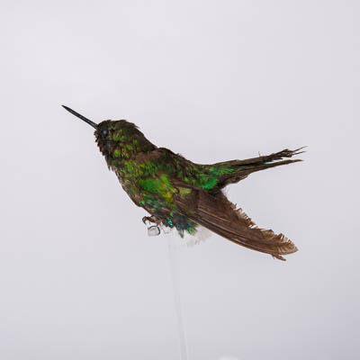Чучело. Изумрудный колибри-эрион. Eriocnemis alinae (Bourcier,1842). Классификация: Хордовые Chordata, Позвоночные Vertebrata, Птицы Aves, Стрижеобразные Apodiformes, Колибри Trochilidae, Изумрудный колибри-эрион Eriocnemis aline (Bourcier,1843)