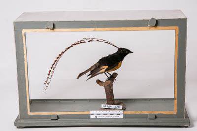 Чучело. Чешуйчатая райская птица. Pteridophora alberti Meyer,1894. Классификация: Хордовые Chordata, Позвоночные Vertebrata, Птицы Aves, Воробьинообразные Passeriformes, Райские птицы Paradisaeidae, Чешуйчатая райская птица Pteridophora alberti A.B.Meyer,1894