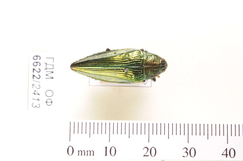 Сухое насекомое. Златка. Paracupta prasina (Gräffe, 1868). Классификация: Членистоногие Arthropoda, Насекомые Insecta, Жуки Coleoptera, Златки Buprestidae