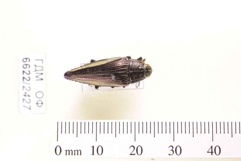 Сухое насекомое. Златка. Paracupta flaviventris (Heer, 1868). Классификация: Членистоногие Arthropoda, Насекомые Insecta, Жуки Coleoptera, Златки Buprestidae