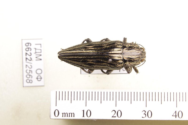 Сухое насекомое. Златка. Chalcophora japonica (Gory, 1840). Классификация: Членистоногие Arthropoda, Насекомые Insecta, Жуки Coleoptera, Златки Buprestidae