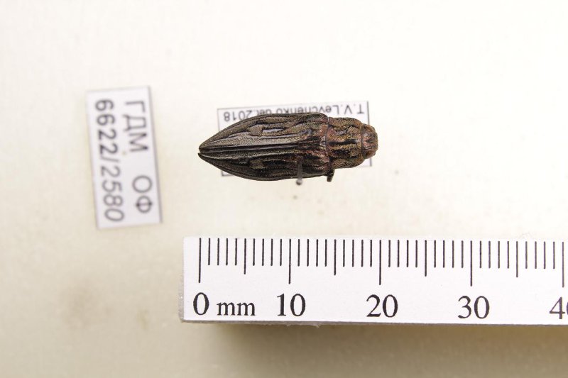 Сухое насекомое. Златка. Chalcophora liberta (Germar, 1824). Классификация: Членистоногие Arthropoda, Насекомые Insecta, Жуки Coleoptera, Златки Buprestidae