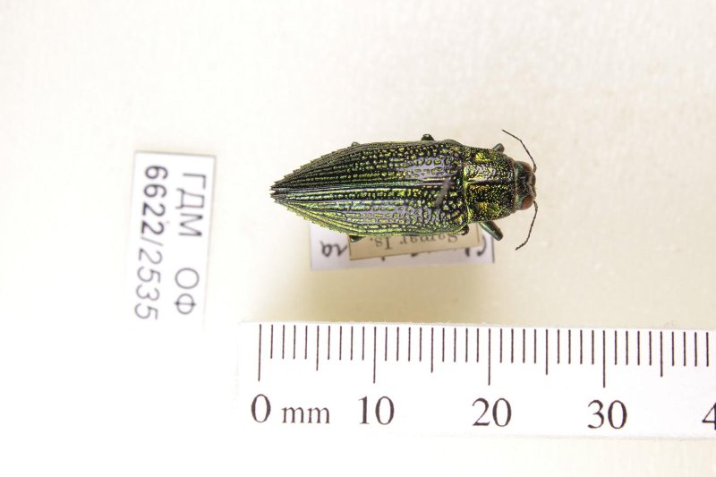 Сухое насекомое. Златка. Chrysodema jucunda Laporte et Gory, 1835. Классификация: Членистоногие Arthropoda, Насекомые Insecta, Жуки Coleoptera, Златки Buprestidae